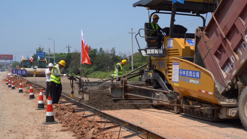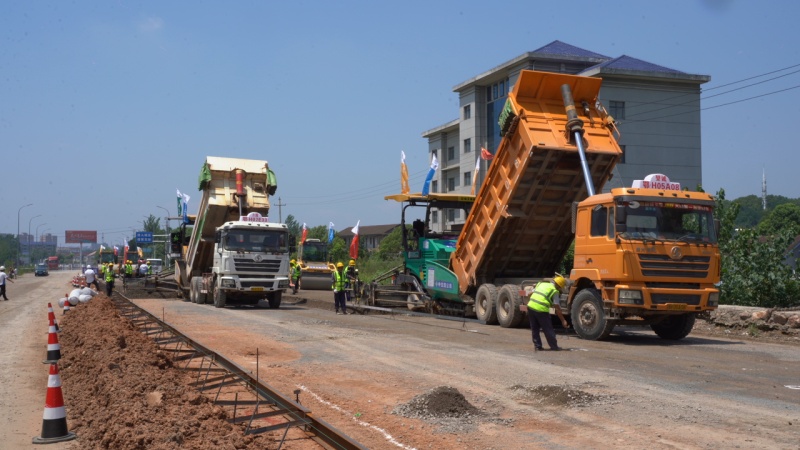 本网讯(向海蓉)7月25日,当阳市348国道改建工程“建养一体化”项目第一合同段(谢花桥至张翼德横矛处)完成水泥稳定基层试验段摊铺,正式进入路面施工阶段。