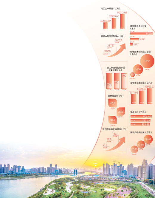 近10年,湖北科技创新多项指标实现大幅提升,全社会研发投入突破千亿元,高新技术产业增加值、规上工业战略性新兴产业营业收入突破万亿元,高新技术企业数量增至14560家。