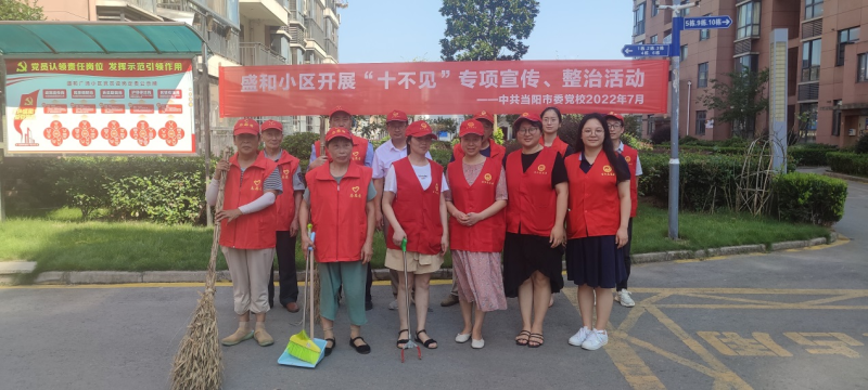 本网讯(钟明天、杨秀娟)7月26日,市委党校至下沉小区和包保街道开展“十不见”专项宣传、整治行动,市委党校和部分小区志愿者参加活动。