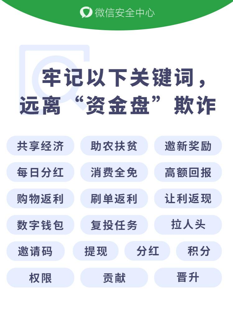 资金盘诈骗违法违规,令人深恶痛绝,微信将持续加大打击力度。我们将根据国家相关法律法规,及《腾讯微信软件许可及服务议》、《微信个人帐号使用规范》等相关协议规范,视违规严重程度对相关帐号进行阶梯式处罚: