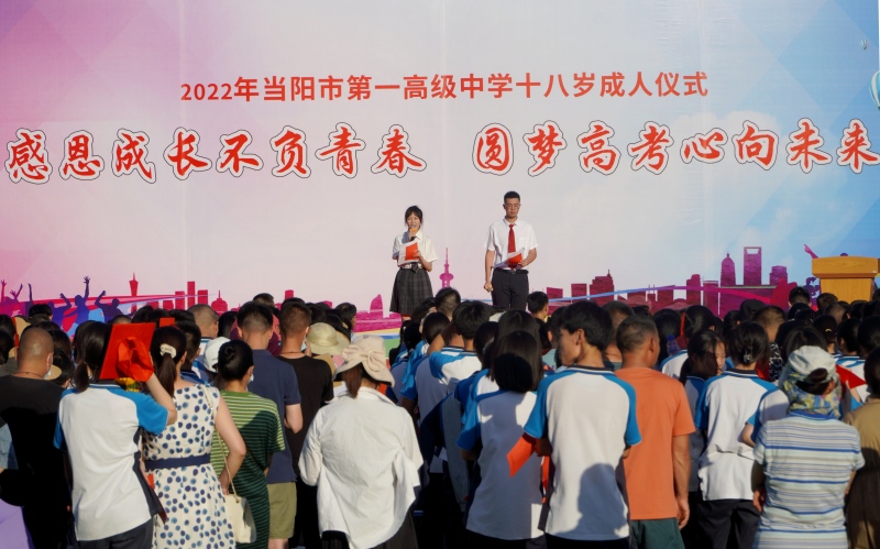 本网讯(高均柱)近日,当阳一中采取线上线下相结合的方式隆重举行了2020级学生十八岁成人礼仪式。