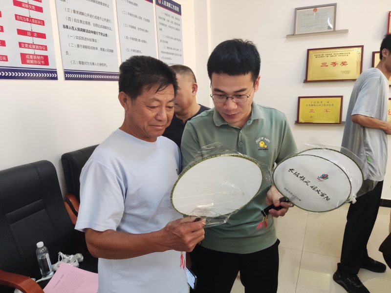 此次活动,市农业农村局邀请“关公文化讲师团”成员、王店镇非遗传承人周勇世为村民进行关公文化宣讲,宣讲主要围绕当阳三国传说、关公事迹以及城市品牌发布会等内容展开。周勇世风趣幽默的语言不时引来大家的笑声,宣讲活动在一片轻松愉悦的氛围中圆满结束。活动吸引了沿河村及周边近80名群众踊跃参与,市农业农村局还为到场村民精心准备了带有当阳城市LOGO的扇子,深受群众喜爱。