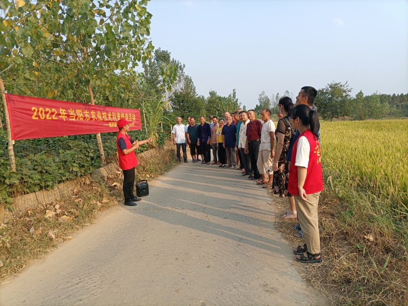 在英雄村二组的一条乡道边,志愿者与村民们面对面,用通俗易懂的语言普及了成熟期水稻的病虫害防治、早迟熟水稻采收的技术要点、注意事项等,并带领村民走进田间,现场查看水稻生长情况,一对一进行技术指导。活动最后,志愿者还给村民们留下了联系方式,承诺如有需求,将第一时间上门开展技术服务。