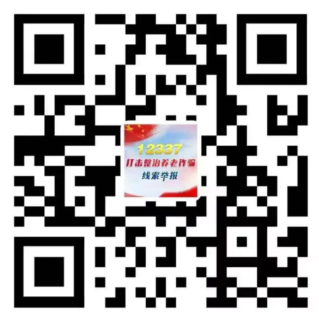 (二)中央政法委 12337 智能化举报平台“打击整治养老诈骗”线索举报通道识别下方二维码举报涉养老诈骗违法犯罪线索