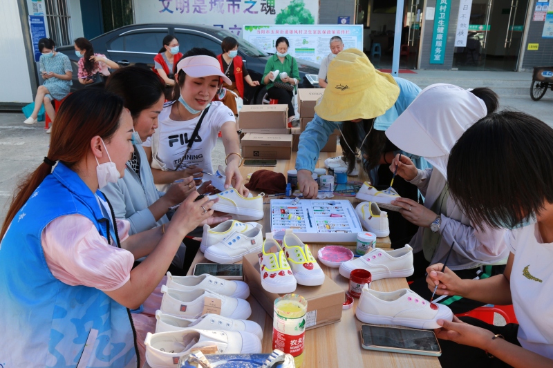 “手绘白鞋”、“手工香皂”、“套圈”等社会组织带来的互动体验项目,吸引了许多居民前来参加,他们享受着手工带来的乐趣。居民王老伯带着老伴逐个项目体验,他说:“本来是出来散散步的,没想到碰上一场公益集市,很有意义!”兑换区,居民们把自己闲置的物品在这里进行“物物交换”。“我今天拿了我家的闲置物品兑换了一双新鞋好开心!”居民郑玉高兴的说道。还有很多居民义捐了衣服、棉被、鞋子等生活用品。宣传区,志愿者正在为居民宣讲政策法规、居民权利和禁毒戒赌的方式方法,通过参观展架、现场咨询、阅读宣传资料等,大家对社会工作的内容和对象有了更直观的了解。