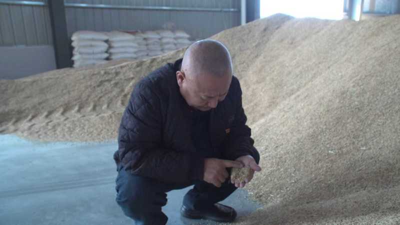 半月镇红光村的兴陇粮食烘干厂里一派繁忙景象,粮仓里装满了刚烘干好的稻谷。谈朝成蹲在粮堆旁,捧起稻谷,仔细查看颗粒饱满度。如今的丰收景象,让人难以相信几年前的红光村还是村民收入远低于全市平均水平的负债村。