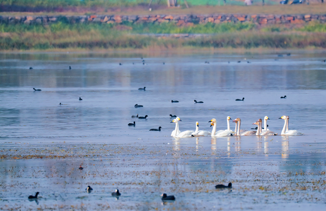 改造后的季家湖上,大批天鹅在此栖息越冬。方梓轩 摄
