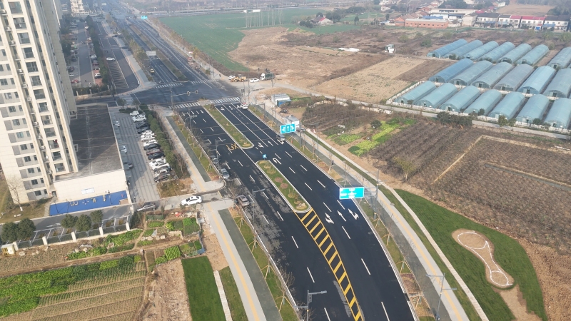 走进忠义大道东延伸段,宽阔平坦的沥青路面已铺设完毕,崭新的交通标识线清晰醒目,道路两旁的绿植相映成趣,一幅“路在景中、景随路延”的画卷徐徐展开。“道路于2025年10月底建成通车,通车后有助于高铁新城区与老城区的交通衔接,缓解周边学校的交通压力,改善周边居民的出行条件。”湖北华信建设工程有限公司现场负责人常宝龙介绍。