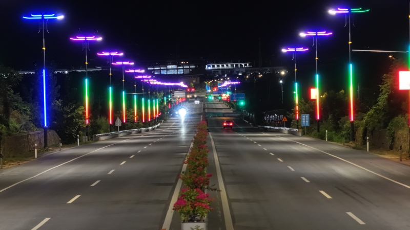 在满足“走得通”的基本需求上,我市更致力于让群众“走得顺畅、走得舒心”。在348国道当阳西收费站出口等重要路段,新投用的853盏智慧路灯颇具巧思:造型融入了本地建筑文化元素,还能根据实际需要智能调节屏幕和LED灯带颜色和亮度,实现实用、美观、环保的有机统一。市住建局城建综合管理股牵头负责人王炎介绍:“我们对路灯的开关时间、对路灯不同时段的不同光源进行了调整,相比以前普通路灯耗电量节约30%。”