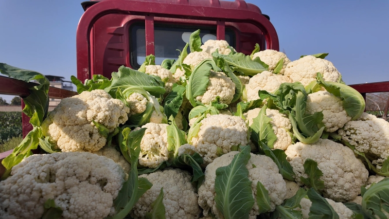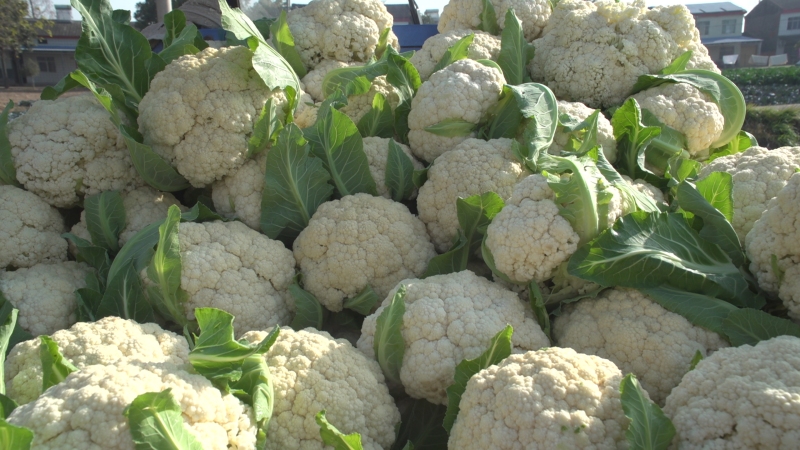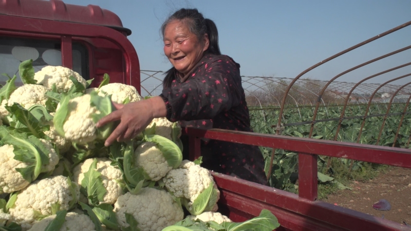 合作社负责人张同新说:“今年以来,花菜已经收了十几万斤,价格是六七毛一斤,相比去年好一些,目前主要发往河南、东北、陕西这些北方城市。”
