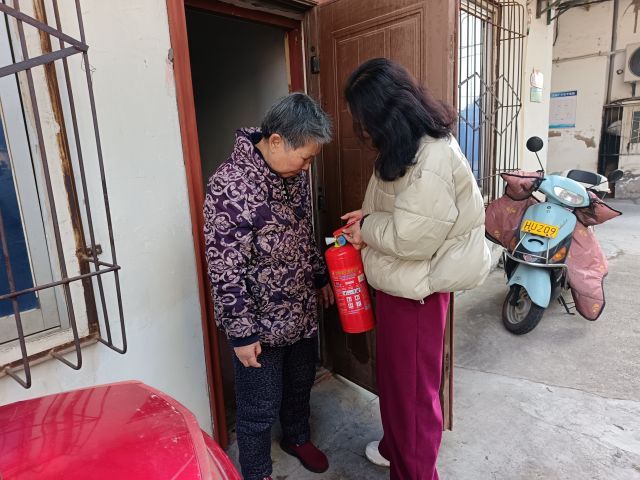 每到一户,社区工作人员都耐心地为老人讲解灭火器的使用方法,手把手教他们操作,用通俗易懂的语言讲解居家防火、应急逃生等安全知识,及时排查家中安全隐患。