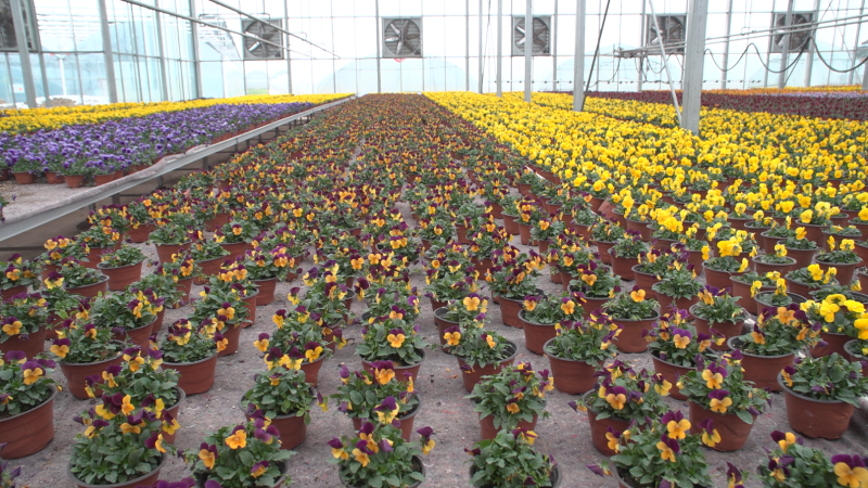 理事长高华荣说:“打造这个花卉育苗基地,首先是为了填补我们蔬菜育苗的空档期,其次也是为了增加我们合作社的收入,我们现在引进了绿化品种草花100余种,保障一年四季都有花。”