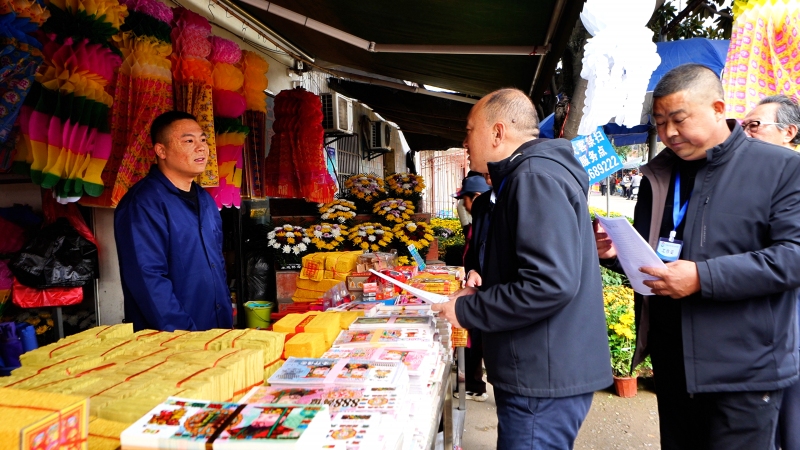 在市清明园公墓,工作人员通过发放宣传资料、现场讲解、签署倡议书等形式,向市民和商户普及文明祭祀理念,倡导摒弃焚烧塑料制品、燃放鞭炮等陋习,改用鲜花、纸质祭祀用品等环保方式寄托哀思。“我们买的祭祀用品必须是环保的,不能用塑料的,要选可降解的纸质品,也不能放鞭炮,还要注意防火,把公墓的环境卫生维护好,就是给子孙后代造福。”市民叶鲜与叶娟说道。