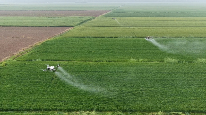 为了更好地给麦田“体检”,当地利用多光谱测绘无人机对麦田苗情进行实时监测,有针对性地对不同田块进行应防尽防。“往年降水比较少的时候,我们只进行一次赤霉病防控,今年为了确保小麦的品质和产量的丰收,我们进行了两到三次的赤霉病防治施药。”高攀介绍。