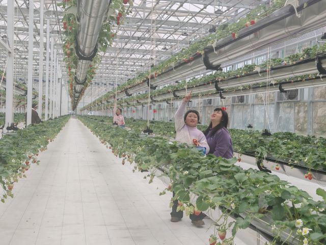 一个月里,主播们日夜接力、坚守岗位,即便春节期间也未曾停歇。他们穿梭在层层叠叠的立体栽培架之间,用镜头近距离呈现颗颗饱满、色泽鲜亮的空中草莓,讲述了基地从智慧温控、精准灌溉到绿色有机种植的全过程,把现代农业的科技感与烟火气,生动传递给屏幕前的每一位网友。镜头内,草莓的香甜扑面而来;镜头外,网友的互动热情持续高涨,点赞、咨询、预约采摘的留言不断刷屏。借助抖音平台的持续短视频宣发与实时直播联动,这片“空中果园”迅速成为了当地的“网红打卡地”,吸引着四面八方的游客慕名而来。